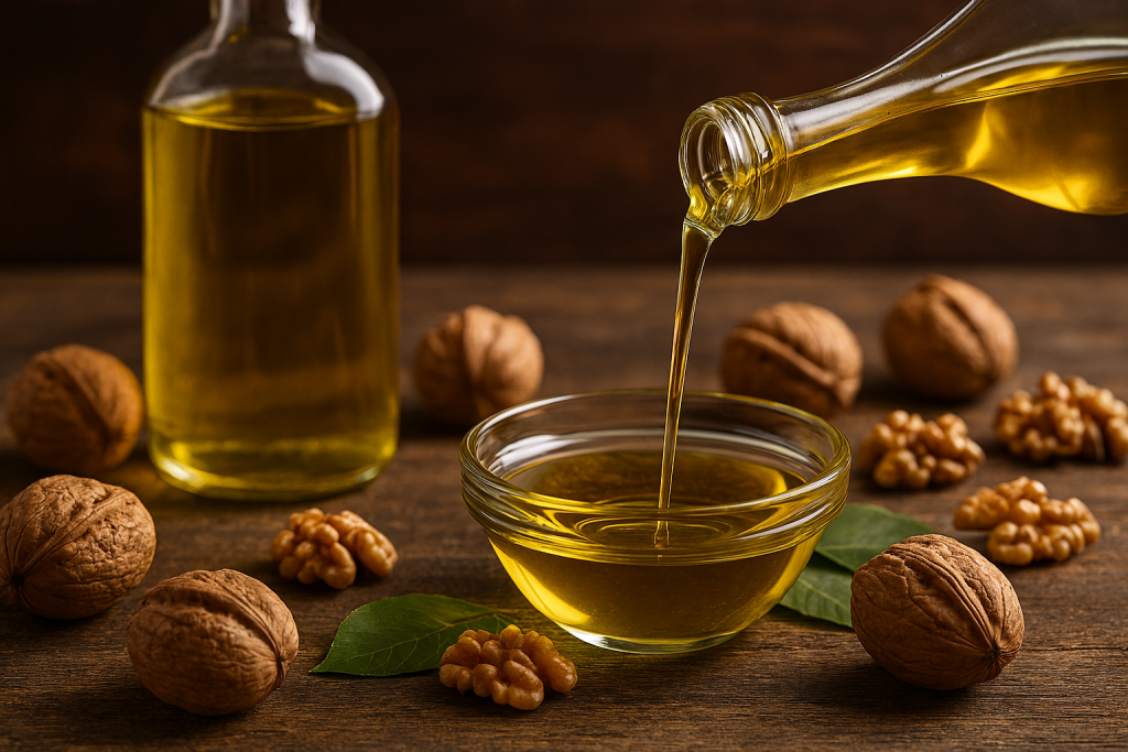 How to use: Store walnut oil in a cool, dark place or refrigerate to extend its life. Drizzle it over steamed vegetables, goat cheese, or fruit-based desserts. In vinaigrettes, pair it with mild vinegar so the oil’s subtle flavor shines.
