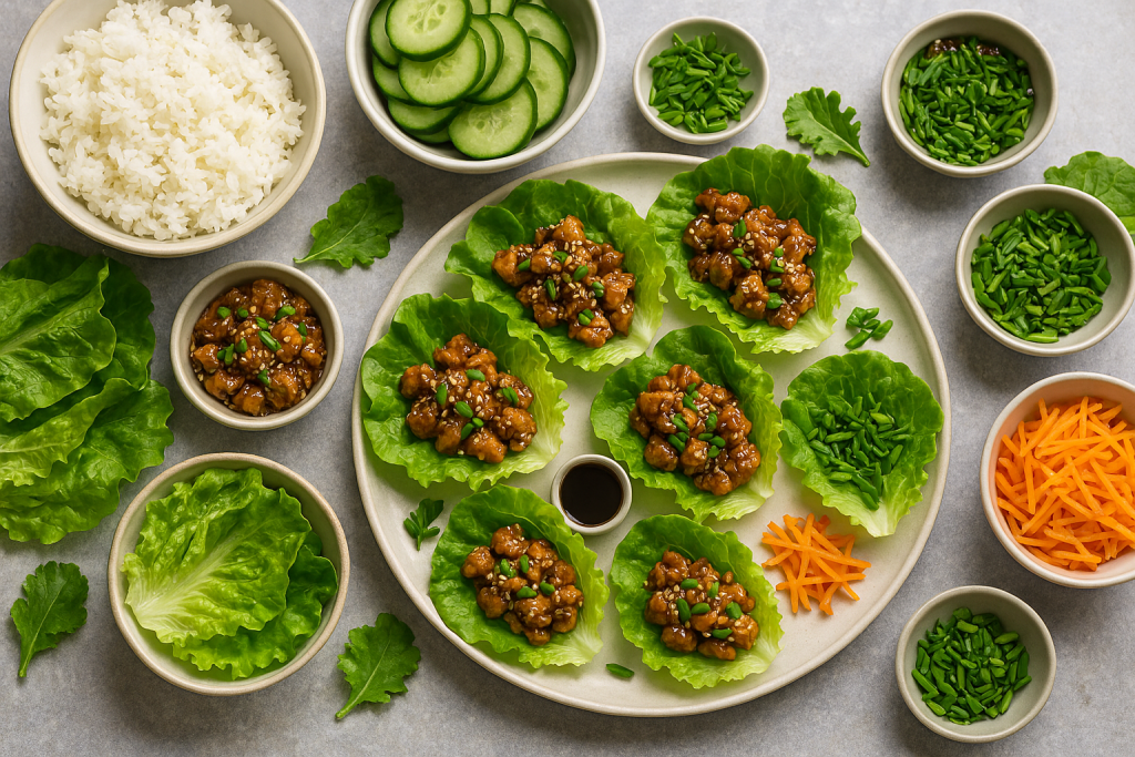 - Spoon the hot chicken mixture into the lettuce leaves and serve right away.